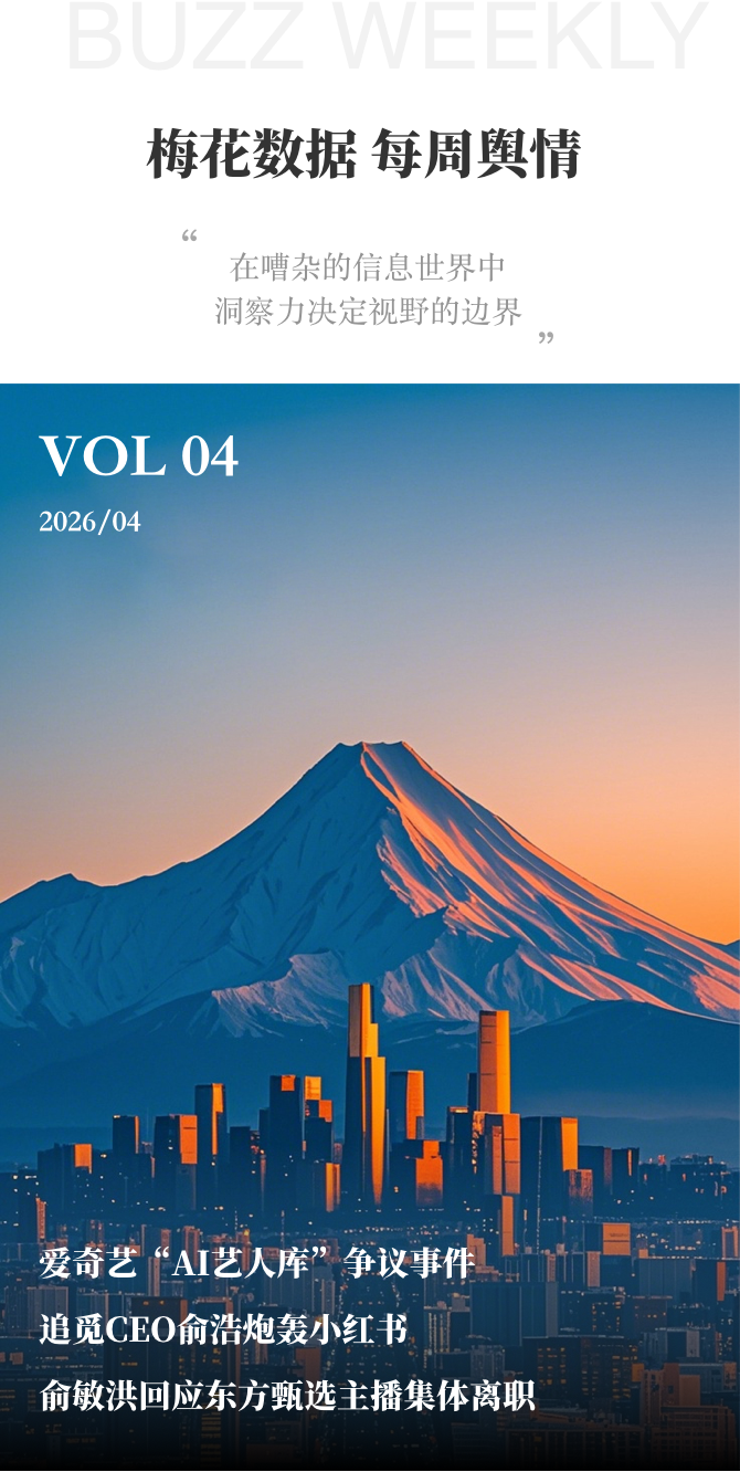新的一周开始,4月28日本周二梅花数据将携手苏秦智库举办第43期声誉管理半月谈直播,重点分析爱奇艺“AI艺人库”争议事件与小米雷军京沪15小时直播挑战事件,欢迎感兴趣的朋友扫描文末海报二维码预约直播。