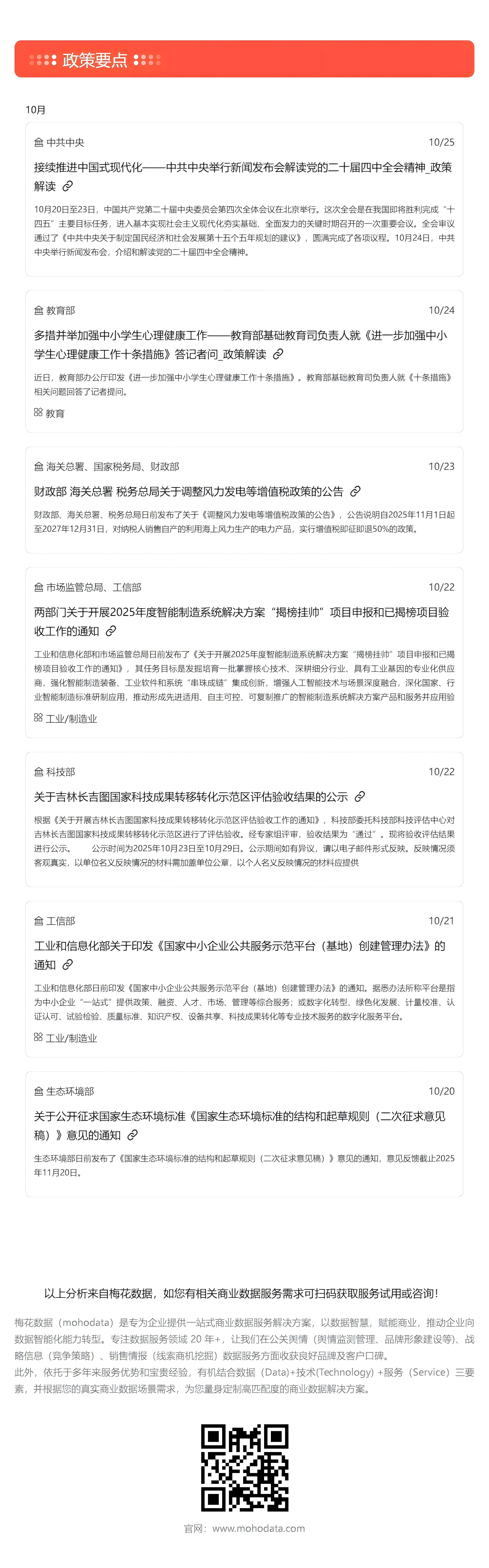 梅花数据一周要政盘点(10.20-10.26)